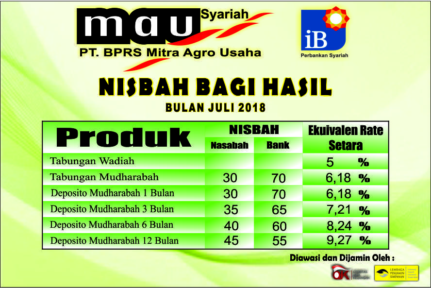 NISBAH BAGI HASIL BULAN JULI 2018
