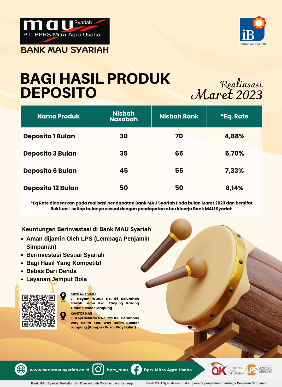 *Eq Rate didasarkan pada realisasi pendapatan Bank MAU Syariah Pada bulan Maret 2023 dan bersifat fluktuasi setiap bulanya sesuai dengan pendapatan atau kinerja Bank MAU Syariah