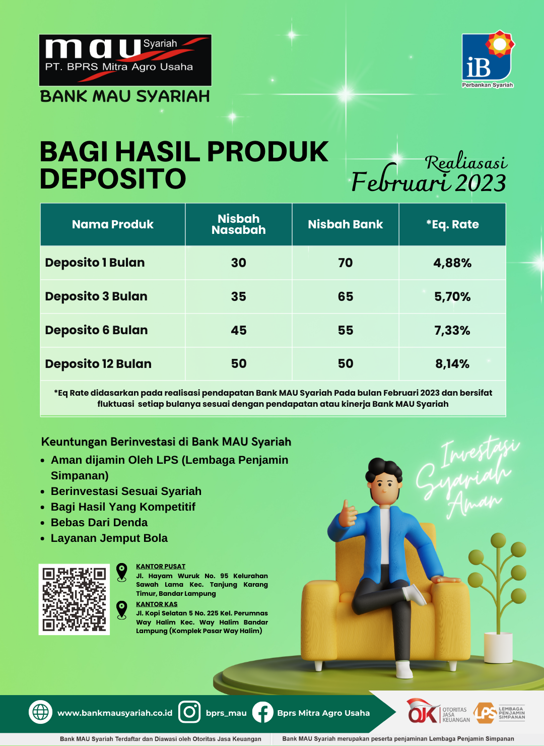 *Eq Rate didasarkan pada realisasi pendapatan Bank MAU Syariah Pada bulan Januari 2023 dan bersifat fluktuasi setiap bulanya sesuai dengan pendapatan atau kinerja Bank MAU Syariah